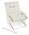We sometimes use special baskets called cat restrainers which can be lined up with the door of the trap so that the cat can be easily transferred from the trap to the basket. They are fitted with a movable internal partition - this has running bars attached which extend outside the basket to form handles. The partition is drawn forward until the animal is held gently but firmly against the basket. A vet can then sedate the cat by injection through the side of the basket. This avoids stressing the cat by trying to handle it and also avoids injury to all concerned. Once the cat has received whatever treatment is necessary as well as being wormed, defleaed and neutered it will be released into one of our cat houses to await a new home. |